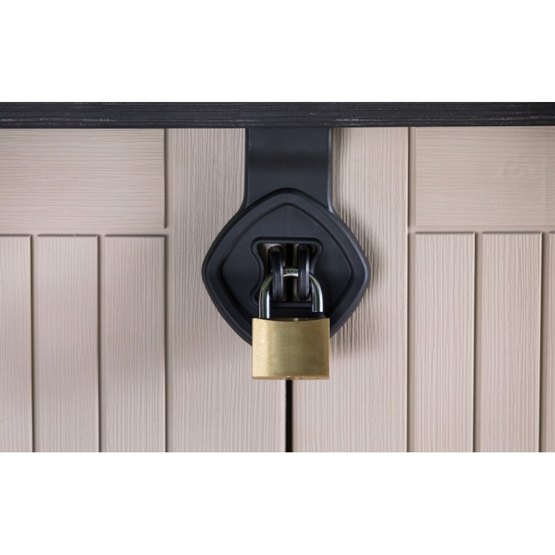 - Abschließbar (Vorhängeschloss nicht im Lieferumfang enthalten)