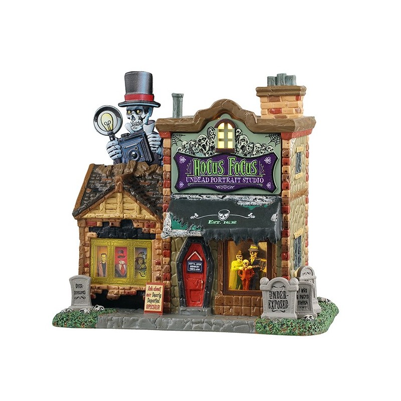 Tauchen Sie mit dem Hocus Focus Undead Portrait Studio in die magische Welt von Lemax ein. Dieses einzigartige Sammlerstück verleiht Ihren Weihnachts- oder Halloweendörfern einen Hauch von Geheimnis und Charme.