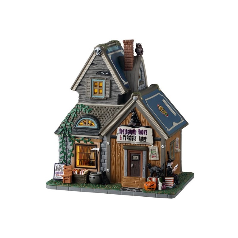 Das Sammlerstück Spellbound Books & Terrible Tales ist ein detailreiches Miniaturgebäude mit 4,5 V Spannung. Reich an faszinierenden Details stellt es eine verzauberte Bibliothek voller magischer Bücher und gruseliger Geschichten dar. Dieses einzigartige Stück verleiht Ihren Weihnachts- oder Halloweendörfern einen Hauch von Magie und Geheimnis.