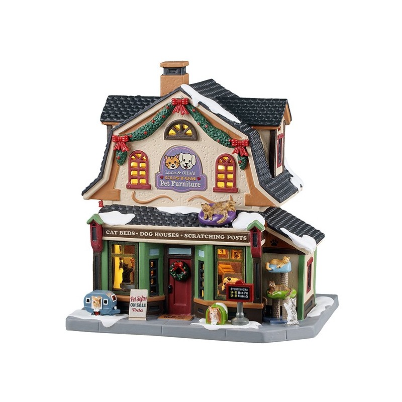 Verleihen Sie Ihrem Weihnachts- oder Halloweendorf mit dem Luna & Ollie's Custom Pet Furniture Cod. 55342 von Lemax einen Hauch von Originalität. Dieses einzigartige Sammlerstück ist perfekt für Tierliebhaber und verleiht Ihrem Dorf eine warme und einladende Atmosphäre.