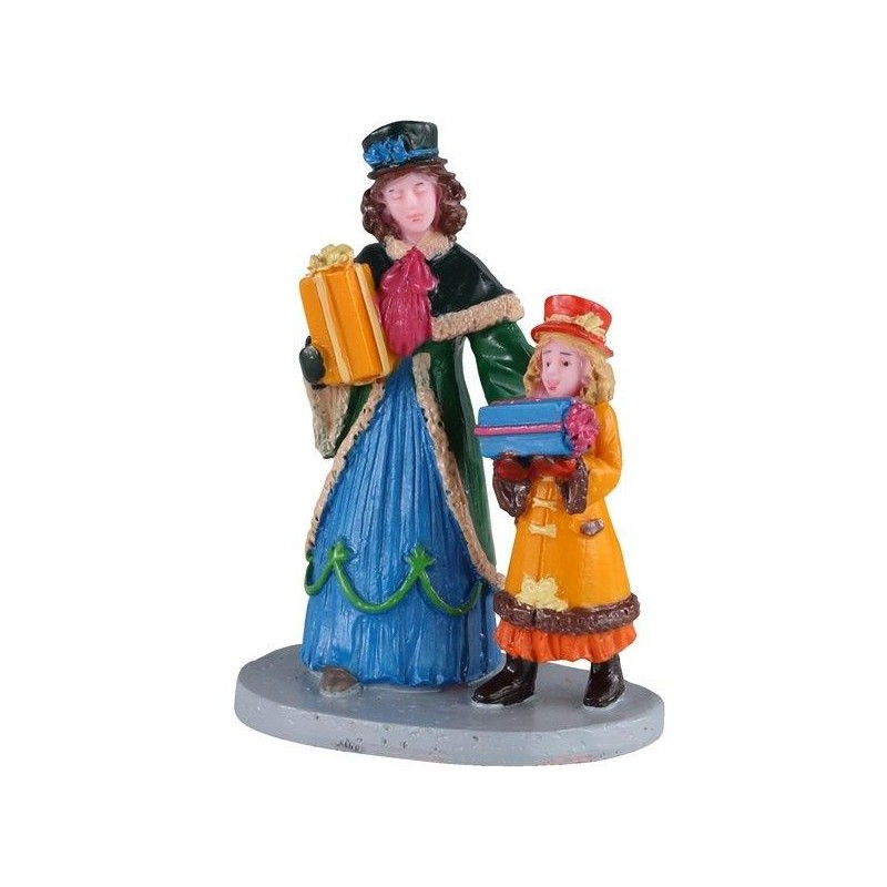 Lemax Shopping For Surprises Cod. 02933 measures 5.3 x 3.7 x 6.8h cm and is mainly made of polyresin.