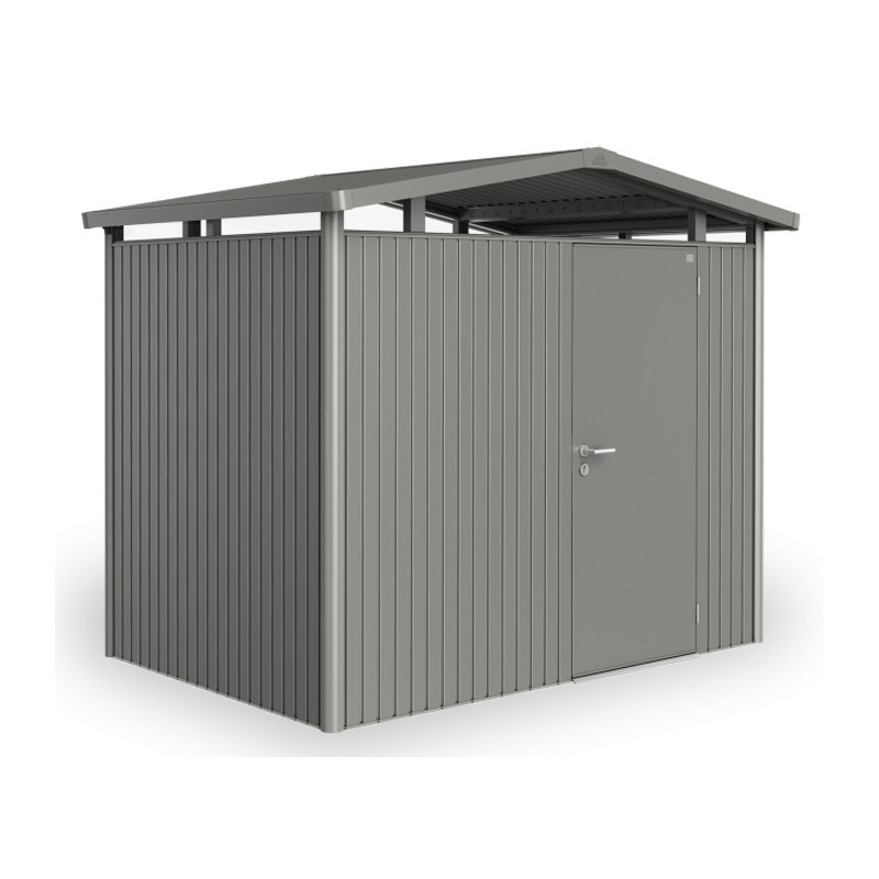 Il lucernario perimetrale in vetro acrilico conferisce alla nuova casetta portattrezzi Panorama® una struttura moderna, a cui questo modello di tetto a due falde si adatta in modo flessibile in qualsiasi ambiente da giardino. Sia la qualità sofisticata di Biohort riguardante materiale e lavorazione, sia le opzioni individuali di dotazione e le diverse misure rendono la Casetta Panorama® la Casetta da giardino perfetta per grandi esigenze: disponibile in 5 Misure (P1, P2, P3, P4 e P5) e in 3 colori (argento-metallizzato, grigio quarzo- metallizzato e grigio scuro metallizzato).