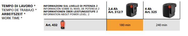 Mit diesem Akku können Sie bis zu ca. 180 Minuten ununterbrochen auf Leistungsstufe 2 arbeiten.