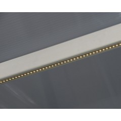 Erhellen Sie Ihren Raum mit dem LED-Diffusor-Streifen-Beleuchtungssystem von Canopia. Elegant, heizarm und einfach zu installieren, ideal für den Außenbereich und kompatibel mit Terrassenüberdachungen, Pavillons und Gewächshäusern. Das Set mit geringem Stromverbrauch umfasst ein Aluminiumprofil, einen LED-Streifen, ein Panel zur Lichtstreuung, einen integrierten Transformator und Kabel. Entdecken Sie Canopia-Qualität!