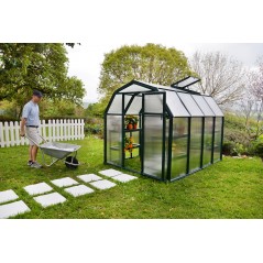 Das Palram - Canopia Eco Grow Gewächshaus ist die klassische Wahl für Gewächshausgärtner. Das scheunenförmige DIY-Gewächshaus bietet klassisches Design, komfortablen Platz und hervorragende Wärmedämmung. Die Schwingtür kann links oder rechts angebracht werden und bleibt dank des magnetischen Türverschlusses leicht geöffnet. Die Dachlüftung sorgt auch bei geschlossener Tür für Belüftung und regelt Temperatur und Luftfeuchtigkeit. Für eine noch bessere Temperaturkontrolle sorgen Gummidichtungen und ein robuster, UV-geschützter Harzrahmen, der für eine bessere Isolierung sorgt. Ihre Pflanzen sind sowohl vor extremen Wetterbedingungen als auch vor Sonneneinstrahlung geschützt. Die nahezu bruchsicheren 4 mm starken doppelwandigen Polycarbonat-Dachplatten und die 6 mm starken doppelwandigen Seitenplatten blockieren schädliche UV-Strahlen und streuen über 80 % des Sonnenlichts für weiches, gleichmäßiges Licht. Der Aufbau ist kinderleicht! Der wetterfeste Harzrahmen verfügt über ein einfaches Stecksystem und lässt sich einfach einschieben. Das Eco Grow Gewächshaus ist perfekt für die Bedürfnisse von Hobbygärtnern! Starten Sie noch heute mit dem Anbau!