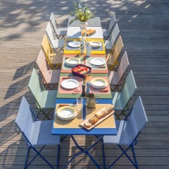 Der **Balcony II Table 70 Honey Yellow Klapptisch** ist ein kompakter und funktionaler Tisch, ideal für Balkone, Terrassen oder kleine Außenbereiche. Er verfügt über einen UV-beständig lackierten HLE-Stahlrahmen (High Elastic Limit) und eine korrosionsbeständige, verzinkte Stahlplatte, ist leicht zu reinigen und zu pflegen. Dank des Klappsystems lässt er sich einfach öffnen und schließen und steht im zusammengeklappten Zustand freistehend. Die verstellbaren Füße sorgen für einen sicheren Stand und bieten viel Platz für die Beine.