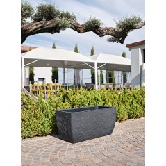 Satz mit 4 RädernDer Petram-Pflanzkübel vereint den authentischen Charme von Naturstein mit der Funktionalität moderner Materialien. Seine rechteckige Form und die raue Oberfläche machen ihn zu einem eleganten Dekorationsobjekt, ideal für Terrassen, Gärten und Balkone.