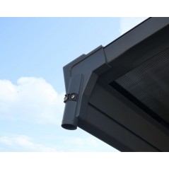 Der Vitoria 3 x 5 bietet eine elegante, langlebige und vielseitige Lösung für das ganze Jahr. Schützt das Fahrzeug vor schlechtem Wetter, schafft einen Sitzbereich oder einen angenehmen schattigen Bereich für Partys. Über 2,9 Meter Breite und 2,4 Meter Höhe bieten ausreichend Platz zum Abstellen Ihres Fahrzeugs. Inklusive Regenrinne, praktisch unzerstörbaren grau lackierten Doppeldachplatten aus Polycarbonat, grau pulverbeschichtetem Aluminiumrahmen und verzinkten Stahlverbindern.