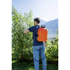 Elektrische Rucksackpumpe mit 12 L Tank und wiederaufladbarem 12 V / 2,5 Ah Li-Ion-Akku. Kraftvoll und leicht: Er hat 5 Balken Leistung und wiegt nur 2.850 Gramm! Die Rucksackpumpe eignet sich perfekt zur Behandlung von Obstbäumen, um diese vor Krankheiten und Insekten zu schützen. Mit robustem, ergonomischem Rucksack, inspiriert von Wandermodellen, und neuem stabilen Griff. Der Akku wird dank des Schnell-Click-In-Systems eingesetzt und ermöglicht eine Arbeitsdauer von ca. 100 Minuten. Schließlich wird die Pumpe mit einer Glasfaserlanze, einer Aluminiumlanze und einem Batterieladegerät geliefert.