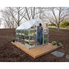 Hybrid is an ingenious greenhouse model for gardening enthusiasts that offers 2 types of virtually indestructible polycarbonate panels along with a durable, powder-coated, stainless aluminum frame. This product meets all your gardening needs. Double roof panels block 100% of harmful UV rays and diffuse direct sunlight. Transparent side panels let 90% of sunlight through. The Hybrid Greenhouse is sturdy, aesthetically pleasing and maintenance-free for years of garden enjoyment.