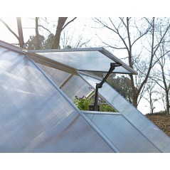 Discover the Canopia Balance Hybrid Garden Greenhouse in Polycarbonate, ideal for the optimal growth of your plants. With UV-protected panels and a rust-resistant aluminum frame, it offers a large work area and easy access thanks to large double doors. Resistant to winds up to 90 km/h and snow loads up to 75 kg/m². Easy to assemble, it is the perfect solution for your gardening. Dimensions: 367x244x229 cm.