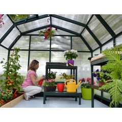Discover the Canopia Hobby Gardener Greenhouse, perfect for the hobby gardener. Durable and easy to assemble, it offers double-walled polycarbonate panels that are virtually unbreakable, ensuring safety and superior thermal insulation. The sturdy, UV-protected resin frame improves insulation and creates unique feeding conditions. With a barn-shaped design, it offers a comfortable workspace. Dimensions: 266X266X208 cm.