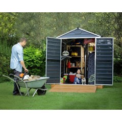 The SkyLight Palram - Canopia shed is ideal for storing, organizing and protecting anything outdoors. The construction with virtually indestructible polycarbonate and Palram - Canopia reinforced aluminum frame means that the SkyLight house does not require maintenance for years. Initially, the panels may not seem optimal in terms of flexibility and thickness, but once assembled the house will be rigid and resistant. SkyLight's unique polycarbonate roof panels let sunlight through during the day, while maintaining the right exterior opacity to maximize privacy. Fans on the front and back improve air circulation. SkyLight Palram - Canopia sheds are designed to last: they won't break, bend or discolor. Resistant to adverse weather conditions, such as hail or high temperatures. Designed to meet your outdoor needs, the SkyLight shed enhances your home and outdoor space.