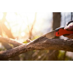 Blade length 18cmFolding saw with straight blade, with automatic closing, for professional use, for all pruning and gardening jobs, made with high quality materials. Thanks to the impulse heat treatment, the tips of the teeth are very resistant and long lasting and guarantee a perfect cut. All spare parts are easily replaceable. - Straight blade in special chromed steel - Pull cut - Ergonomic handle in polypropylene - Non-slip in soft synthetic rubber (TPA material). Blade length: 18 cm Weight: 190 g