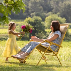The **R‑Clip Miel Zero Gravity Relax Chair** offers a multi-position reclining seat with the “Zero Gravity” system for optimal comfort, thanks to the position in which the legs are slightly above the heart; it is made with an HLE (high elastic limit) steel frame with UV-resistant paint and Batyline® ISO fabric connected with Lafuma patented elastomer clips for even weight distribution and comfortable back support, ideal for the garden, terrace or poolside, with one-piece resin armrests and an adjustable and removable headrest.