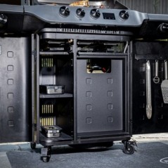 Modular system with removable central grill to use dedicated accessories and expand cooking options.