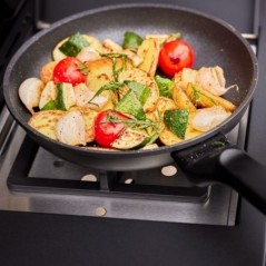 Sistema modular con parrilla central extraíble para utilizar accesorios específicos y ampliar las opciones de cocción.