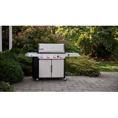 Color: InoxidableDescubre la Barbacoa de Gas Weber Genesis SP-435: prestaciones superiores para experiencias culinarias únicas. Con 4 quemadores, zona de sofrito y quemador lateral, ofrece una potencia de 14,1 Kw/h. Atractivo diseño en acero inoxidable, con amplios estantes laterales, mueble cerrado y compartimento lateral abatible. Equipado con iluminación de perilla para una cocción precisa. Garantía de 12 años. Código Producto: 1501164. Weber, sinónimo de calidad e innovación en el mundo de la barbacoa.