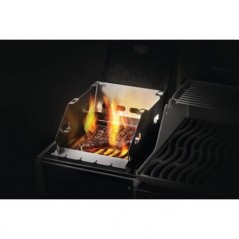 EAN: 629162713025Protector lateral pequeño diseñado para todas las parrillas Napoleon Rogue con quemadores laterales infrarrojos SIZZLE ZONE. Utilice los soportes para brochetas integrados para asar kebabs. Las rejillas se pliegan cuando no se usan para evitar que los alimentos caigan sobre el quemador, pero permanecen fácilmente accesibles para su uso con el quemador principal. Incluye 4 brochetas de acero inoxidable.
