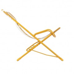 La tumbona balancín plegable **Transaswing Airlon® Rayure Jaune / Rayure Miel** combina comodidad y oscilación dinámica gracias a su estructura flexible que sigue tus movimientos, con un respaldo adaptable y **3 posiciones de asiento**; el tejido Airlon® es desenfundable y reemplazable, resistente a los agentes atmosféricos y a los rayos UV, ideal para uso exterior en jardín, terraza o piscina y completada con cómodos reposabrazos y reposacabezas regulable.