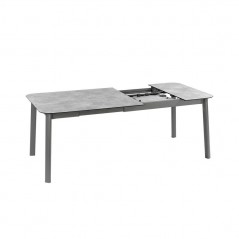 La mesa de jardín extensible **Oron Table Ext 150 HPL Allonge Papillon Gris Ciment / HPL / Tube Titane** es una solución de exterior elegante y funcional para sentar a **6-8 personas**, con una **estructura de aluminio ultraligera y resistente a la corrosión** y un tablero de **HPL (Laminado de Alta Presión)** resistente a impactos, arañazos, variaciones de temperatura y fácil de limpiar; el sistema de extensión *papillon* permite extender el tablero desde aproximadamente 169 cm hasta aproximadamente 209 cm con una simple apertura, mientras que las **almohadillas antideslizantes** facilitan la extensión incluso en solitario y garantizan la estabilidad durante las comidas con amigos o familiares.