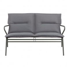 El **banco bajo acolchado Vence BeComfort® Gris Silver / Titane** es un asiento de exterior para dos personas con estructura en tubo de acero de Ø22 mm pintado con pintura resistente a los rayos UV y a la intemperie, equipado con un tejido **Batyline® DUO** con una funda de colchón acolchada **BeComfort®** de tres capas para un alto confort; el sistema patentado de tensión del tejido mantiene el asiento sujeto mientras que el banco permanece **apilable** y fácil de mover, ideal para combinar con otros elementos de la línea lounge *Vence* para crear un elegante y cómodo salón de jardín.