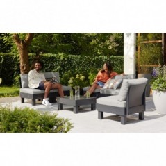 Conjunto modular, puedes configurarlo según tus necesidades, textura efecto madera. Cojines extragruesos desenfundables (9 cm) incluidos.