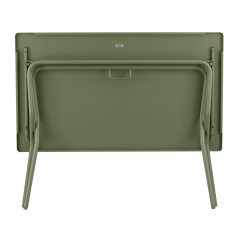 MESA DE ACERO PLEGABLE PARA EXTERIOR. AUTOPORTANTE CUANDO CERRADO EN POSICIÓN VERTICAL