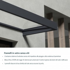 La marquesina para puerta Amsterdam es elegante, funcional y duradera, diseñada para mantener su entrada, puerta o fachada seca y protegida de los elementos. Cubra la entrada, la barbacoa y la bicicleta, reduciendo la cantidad de luz solar directa. Los brazos de soporte de acero galvanizado con recubrimiento en polvo, el canal delantero y la moldura trasera de aluminio, junto con los paneles sólidos de alto impacto 100 % resistentes a los rayos UV, hacen de Amsterdam una cochera perfecta. El diseño robusto y moderno complementa cualquier decoración y ambiente. Agregue valor a su hogar o propiedad con una extensión de bricolaje ecológica, diseñada para usarse en los años venideros.