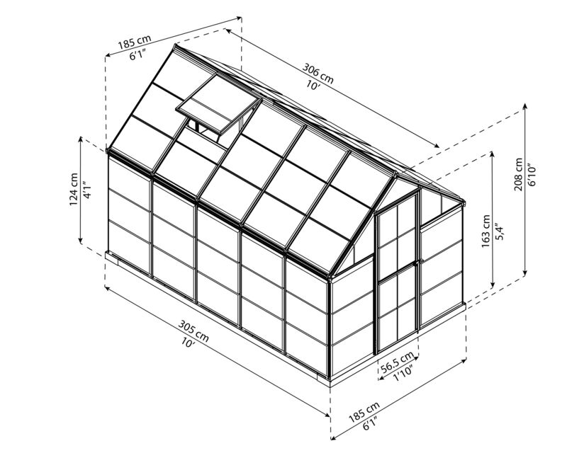 Enjoy gardening activities with the Harmony greenhouse. Fill the garden with organic fruits and vegetables and hundreds of colorful annuals grown in your private greenhouse. This wonderful greenhouse includes a stainless steel galvanized steel perimeter base that offers added support, stability and alignment. It is made of virtually indestructible clear polycarbonate panels, which are simple to slide and lock into place, as well as stainless aluminum construction. The greenhouse ventilation window helps maintain the desired temperature and humidity levels and promotes air circulation. Thanks to its elegant design, it is beautiful, robust and practical once built, designed to last.