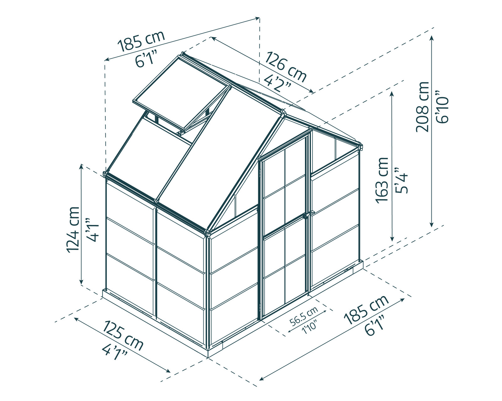 Hybrid is an ingenious greenhouse model for gardening enthusiasts that offers 2 types of virtually indestructible polycarbonate panels along with a durable, powder-coated, stainless aluminum frame. This product meets all your gardening needs. Double roof panels block 100% of harmful UV rays and diffuse direct sunlight. Transparent side panels let 90% of sunlight through. The Hybrid Greenhouse is sturdy, aesthetically pleasing and maintenance-free for years of garden enjoyment.
