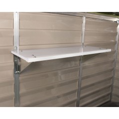 Optimize your storage space with this SkyLight shelving kit. This is an all-inclusive kit, which comes complete with a high-quality 16mm polycarbonate shelf, two galvanized steel brackets and hardware. This shelf allows you to free up the floor space you need and organize your shed efficiently. The shelf can hold up to 30 kg; It is designed to be mounted on the SkyLight Shed Series aluminum frame