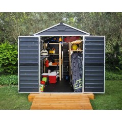 The SkyLight Palram - Canopia shed is ideal for storing, organizing and protecting anything outdoors. The construction with virtually indestructible polycarbonate and Palram - Canopia reinforced aluminum frame means that the SkyLight house does not require maintenance for years. Initially, the panels may not seem optimal in terms of flexibility and thickness, but once assembled the house will be rigid and resistant. SkyLight's unique polycarbonate roof panels let sunlight through during the day, while maintaining the right exterior opacity to maximize privacy. Fans on the front and back improve air circulation. SkyLight Palram - Canopia sheds are designed to last: they won't break, bend or discolor. Resistant to adverse weather conditions, such as hail or high temperatures. Designed to meet your outdoor needs, the SkyLight shed enhances your home and outdoor space.