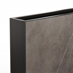 The Herstera Deco planter collection features planters of varying heights and depths that can be seamlessly connected. With a clean, linear design, this collection easily integrates into any space or environment. The combination of black steel and laminated panels with a marble or wood effect adds the look and warmth of natural materials. When the planters are connected, the structure is free of internal walls, encouraging natural root growth. Furthermore, a wide range of compatible accessories allows for customization to meet the specific needs of any project. Each planter features a base with drainage holes to prevent waterlogging and promote plant health. The adjustable feet included with each planter ensure stability and proper drainage, even on uneven terrain. The laminated panel is magnetically attached to the planter and can be easily removed from the front using the included tool, without the need to disassemble the planter.