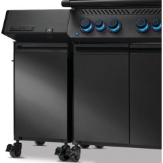 Ean: 2211001540008The set of 2 carts for Napoleon Prestige Phantom 500 barbecue is a modular storage system designed to expand and organize the space under the Phantom Prestige® barbecue. Made in a matte black finish, these mobile cabinets integrate hidden drawers, adjustable internal dividers and tool hooks for tidy management of grill accessories. The lockable wheels allow the carts to be moved as a single unit while maintaining stability during use. Designed to enhance efficiency, accessibility and order in the outdoor cooking area, they represent a functional and premium solution for modern outdoor kitchens.