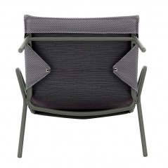 The **Vence BeComfort® Gris Silver / Titane padded low armchair** offers particularly comfortable seating thanks to the three-layer BeComfort® padded mattress topper combined with the durable Batyline® Duo fabric, with a UV and weather-resistant painted steel frame and a stackable design for easy transport and storage; the patented fabric tensioning system keeps the seat supported while the low seat makes this armchair ideal for creating a modern and welcoming garden lounge.