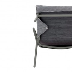 The **Vence BeComfort® Gris Silver / Titane padded low bench** is an outdoor seat for two people with a Ø22 mm steel tube frame painted with UV and weather-resistant paintwork, equipped with a **Batyline® DUO** fabric with a three-layer padded **BeComfort®** mattress cover for high comfort; the patented fabric tensioning system keeps the seat supported while the bench remains **stackable** and easy to move, ideal for combining with other elements from the *Vence* lounge line to create an elegant and comfortable garden lounge.