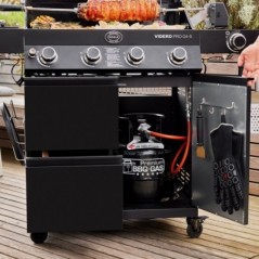 Color: Matte BlackThe exclusive Videro Pro G4-S black Vario+ barbecue station combines elegance and performance: with four main burners and side grills, it allows you to cook multiple dishes at the same time, keeping everything within easy reach thanks to the practical drawers and side tables.