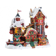 Step into the heart of Santa's Wonderland with the Lemax Elf Village Deluxe Pack with Free Snow . The North Pole Control Tower, The Elf Workshop, the Elf Made Toy Factory, and the elf houses offer a behind-the-scenes look at the preparations for Christmas: flights are coordinated, toys are made, and gifts are wrapped. With warm lights, vibrant colors, and handcrafted details, each building adds a unique piece to your village, transforming it into an authentic, living, and enchanting miniature North Pole.