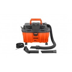 The 21 V cordless vacuum cleaner and blower is the ideal tool for vacuuming dust, material residues and liquids in the home environment, on workbenches and workshops. It also has excellent cleaning performance on fabrics and car interiors. By changing the inlet of the suction hose, the blower mode is activated, which is useful for small gardening jobs such as collecting leaves.
