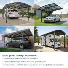 Discover the Carport Canopia Arcadia in Aluminum 3.6 X 6.5 m: elegant, resistant and versatile. Ideal for protecting your SUV or outdoor furniture, it is also perfect as an outdoor kitchen or play area. Easy to assemble, requires no maintenance and resists snow, wind and UV rays. With integrated gutter and indestructible polycarbonate panels. Choose Canopia quality for your outdoor space!
