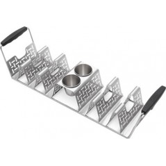 Email: 77924896729Perfect for an aperitif! This premium stainless steel taco holder holds up to six tacos. It is designed with silicone handles to be easily transported from the grill to the table. When everyone is ready to eat, the two built-in salsa containers keep guacamole and salsa close at hand.