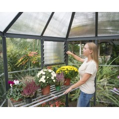 Discover the Canopia Oasis Garden Greenhouse in Hexagonal Polycarbonate, your personal corner of paradise. With an elegant and spacious design, it is perfect for growing and gardening organically. The indestructible polycarbonate panels protect your plants from UV rays, while the gray aluminum structure ensures durability and stability. Enjoy your outdoor space without worrying about maintenance. Create your ideal garden with Canopia.