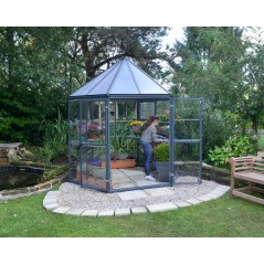 Enhance the look of your garden and create your own little paradise with the Oasis Greenhouse. Elegant hexagonal design that offers plenty of space for pleasant and successful cultivation and gardening. Ideal for organic cultivation. Sit back, relax and enjoy your new maintenance-free outdoor space.
