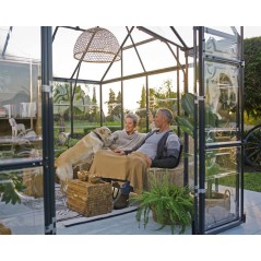 Discover the Canopia Victory Garden Chalet in Polycarbonate 305X365X269 cm: the ideal solution for your gardening all year round. Stainless aluminum structure, indestructible and transparent polycarbonate panels, block 100% of UV rays. Easy to assemble, requires no maintenance. Large internal space, height of 260 cm, integrated gutter and anchoring system for maximum stability. Discover Canopia quality!
