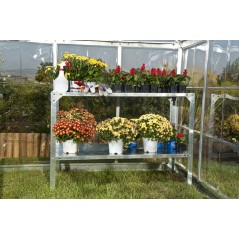 Discover the Canopia Steel Work Table: robust, versatile and resistant. Ideal for organizing your workspace in the greenhouse, garage or garden. Equipped with 2 adjustable shelves, it supports up to 75kg each. The top shelf is reversible for storing soil. Made of galvanized steel, it requires no maintenance. Easy to assemble and move. Dimensions: 51x115x80 cm. Canopia, quality that lasts over time.