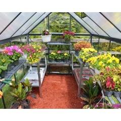 Hybrid is an ingenious greenhouse model for gardening enthusiasts that offers 2 types of virtually indestructible polycarbonate panels along with a durable, powder-coated, stainless aluminum frame. This product meets all your gardening needs. The double roof panels block 100% of harmful UV rays and diffuse direct sunlight. The transparent side panels let in 90% of sunlight. The Hybrid greenhouse is sturdy, aesthetically pleasing and maintenance-free for years of garden enjoyment.