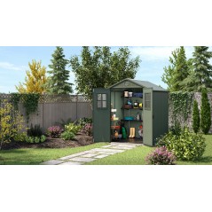 Shed in reinforced polypropylene, robust and ideal for storing tools and for any need in the garden. Excellent insulation from external conditions. Simple and intuitive assembly. Equipped with a ventilation grill and two fixed windows to maximize natural light.