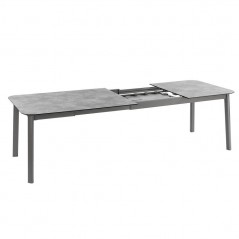 The **extendable garden table Oron Table Ext 200 HPL Allonge Papillon Gris Ciment / HPL / Tube Titane** is an elegant and functional outdoor table designed to accommodate **8 to 10 people**, with **ultralight and corrosion-resistant aluminum structure** and **HPL (High Pressure Laminate)** top resistant to scratches, impacts and high temperatures up to 180 °C, easy to clean and suitable for food contact; thanks to the *papillon* extension system it can be quickly extended from approximately 200 cm to approximately 260 cm with a simple gesture to adapt to your space requirements and number of guests, while the non-slip glides and ball bearing guides guarantee smooth and safe opening and closing even independently.