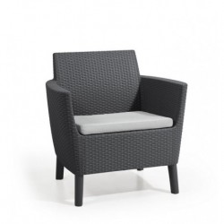 Set composed of: 1 2-seater sofa, 2 armchairs and a container table.
